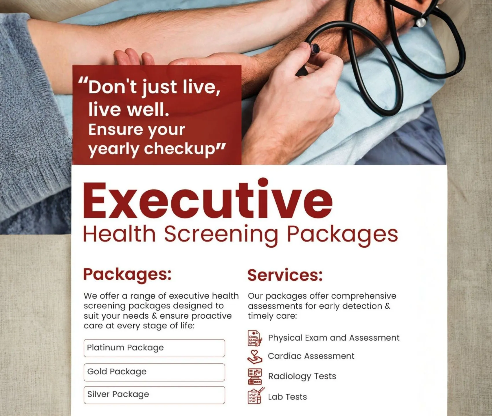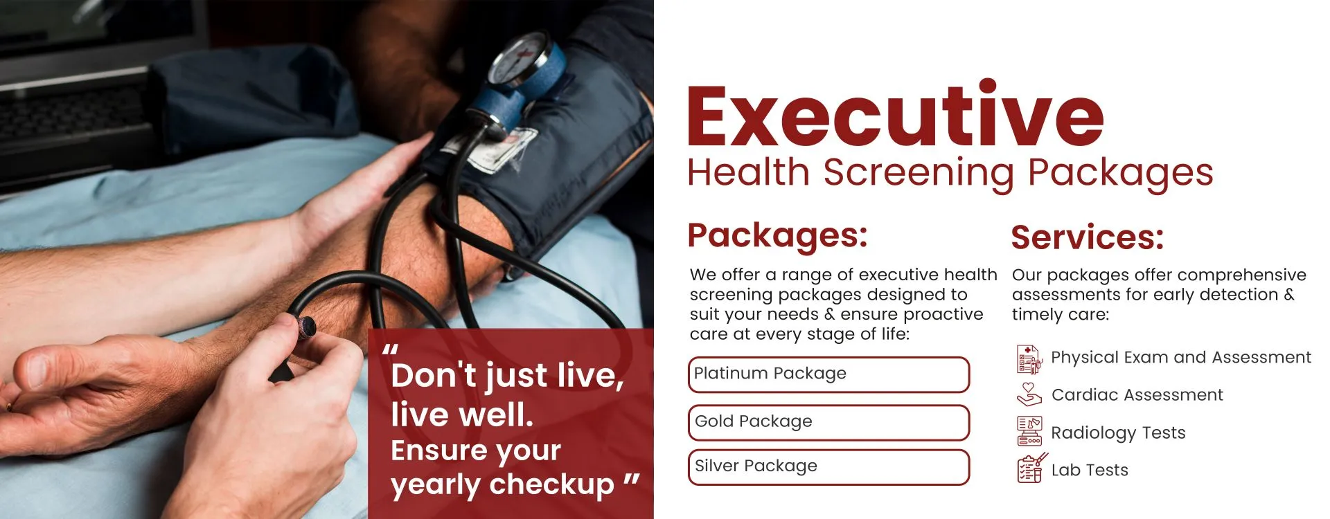 Stay proactive about your health with our Platinum, Gold, and Silver Health Screening Packages designed to provide a complete medical assessment, early disease detection, and expert consultation—all in one place.
