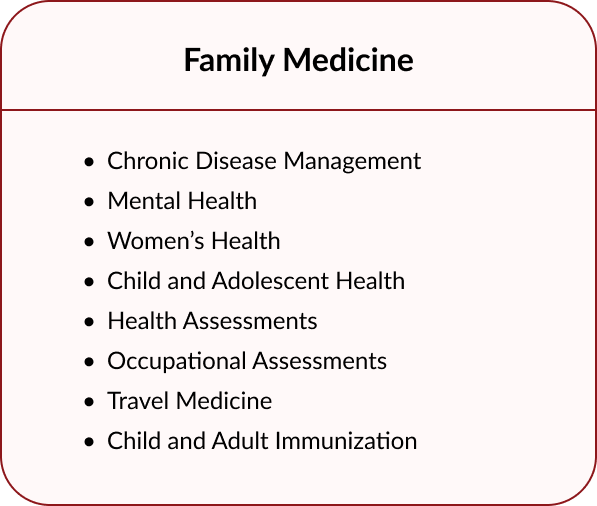 Family Medicine Services offered Consultants DOCTOR Ayesha Shoaib Family Medicine Consultant Read More Timing Monday to Friday (10am to 11am / 3:30pm to 4:30pm) Qualifications MBBS, MRCGP (UK), CCT (UK) Expertise Hypertension Diabetes Mellitus Cardiovascular Health Bone Health Women’s Health Mental Health Hypothyroidism COPD (Chronic Obstructive Pulmonary Disease) Asthma Contraception BOOK AN APPOINTMENT DOCTOR Umer Farooq Sheikh Family Medicine Consultant Read More Timing Tuesday & Wednesday (11am to 1pm), Friday & Saturday (6:30pm to 9pm) Qualifications MBBS, MCPS, MRCGP(INT) Expertise Hypertension Diabetes Mellitus Cardiovascular Health Bone Health Women’s Health Mental Health Hypothyroidism COPD (Chronic Obstructive Pulmonary Disease) Asthma BOOK AN APPOINTMENT